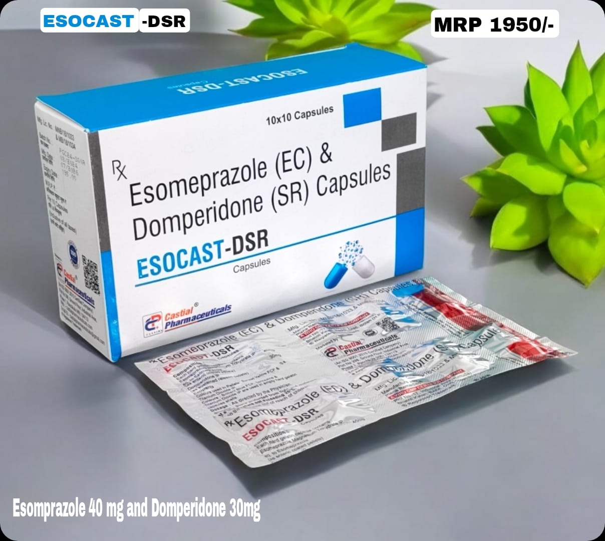Esomeprazole 40mg is used to treat conditions where there is too much acid in the stomach. Esomeprazole is a proton pump inhibitor (PPI). It works by decreasing the amount of acid that is produced by the stomach.Domperidone30mg SR is a medicine that increases the movements or contractions of the stomach and bowel. Domperidone is also used to treat nausea and vomiting caused by other drugs used to treat Parkinsons Disease. This medicine is available both over-the-counter (OTC) and with your doctor?s prescription. The inclusion of “SR” indicates that the formulation is designed for sustained release, meaning the medication is released slowly over time, offering a prolonged therapeutic effect and potentially reducing the frequency of dosing. To use the capsule: Swallow the capsule whole. Do not crush or chew it. If the capsule cannot be swallowed, open it and sprinkle the contents on one tablespoonful of applesauce. Swallow the mixture right away. Do not chew or crush the granules.