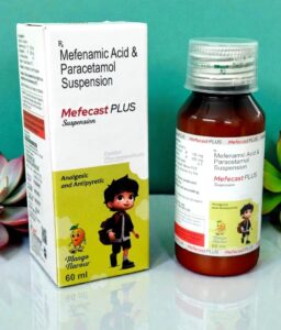 Mefecast PLUS Suspension is a combination of Mefenamic Acid and Paracetamol, formulated to provide effective relief from pain and fever in children. It works by reducing inflammation, relieving mild to moderate pain, and lowering elevated body temperature.